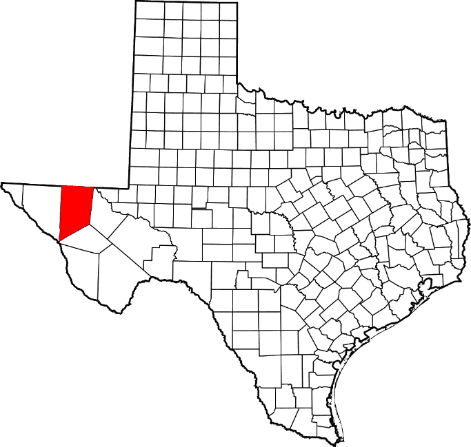 Culberson County is located in West Texas, directly east of El Paso County and Hudspeth County. Culberson County has a total area of 3,813 square miles and a population of 2,188 as of 2020.